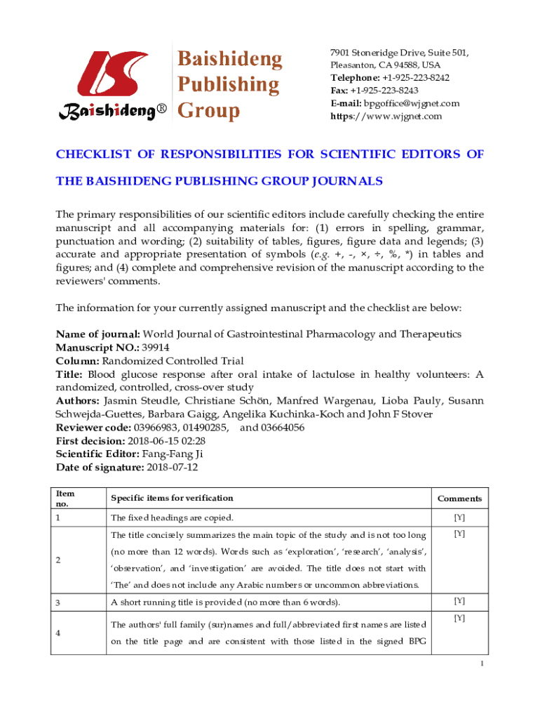 7901 Stone ridge Drive, Suite 501, Pleasant on, CA 94588, Telephone: +19252238242 Fax: +19252238243 Email: bpgoffice@wjgnet.com https://www.wjgnet.comCHECKLIST OF RESPONSIBILITIES FOR SCIENTIFIC EDITORS