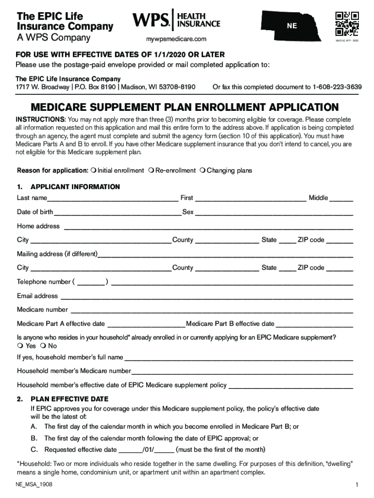 mywpsmedicare. Commas NE APP 2020FOR USE WITH EFFECTIVE DATES OF 1/1/2020 OR LATER
