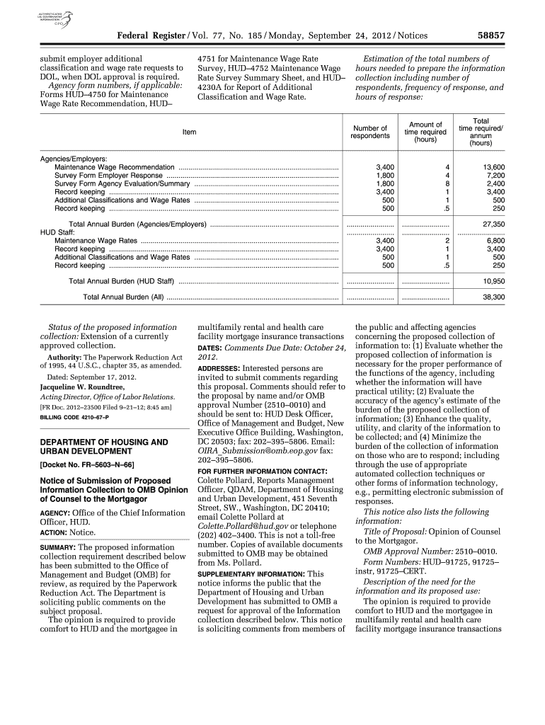 58857 Federal Register / Vol. 77, No. 185 / Monday, September 24, 2012 / Notices submit employer additional classification and wage rate requests to DOL, when DOL approval is required. Agency form
