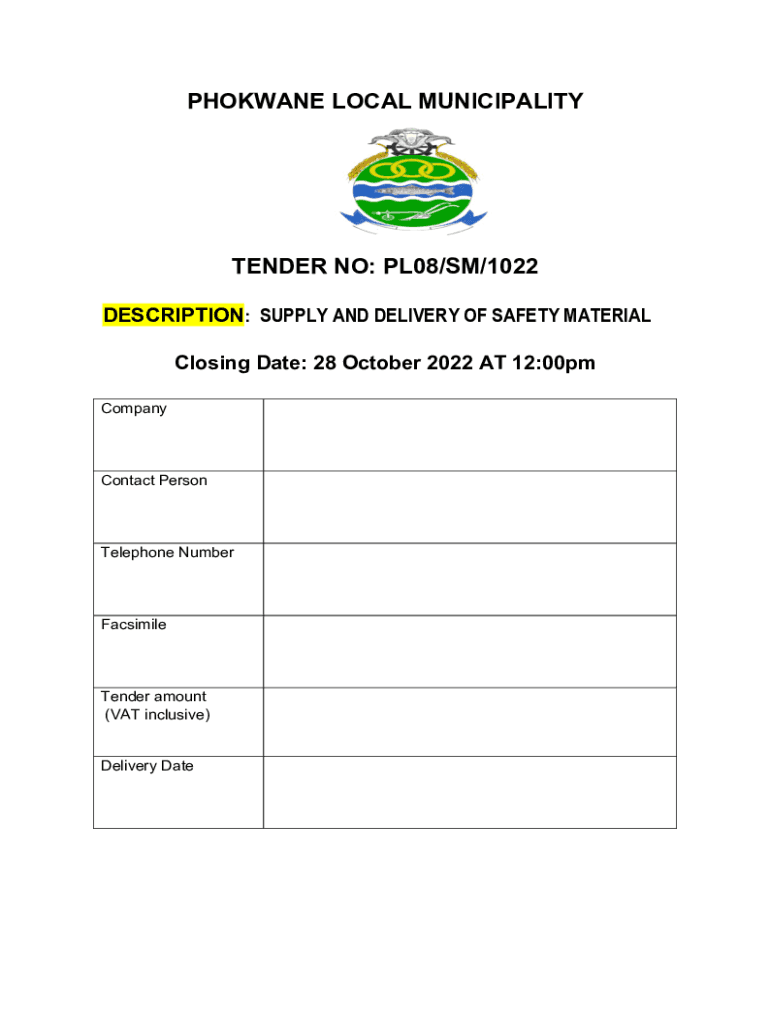 PHONE LOCAL MUNICIPALITYTENDER NO: PL08/SM/1022