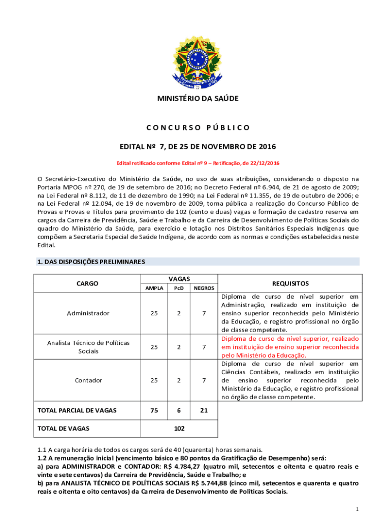 Edital retificado conform Edital n 9 Retificao, DE 22/12/2016O SecretrioExecutivo do Minis trio the Sade, no us ode seas attributes,