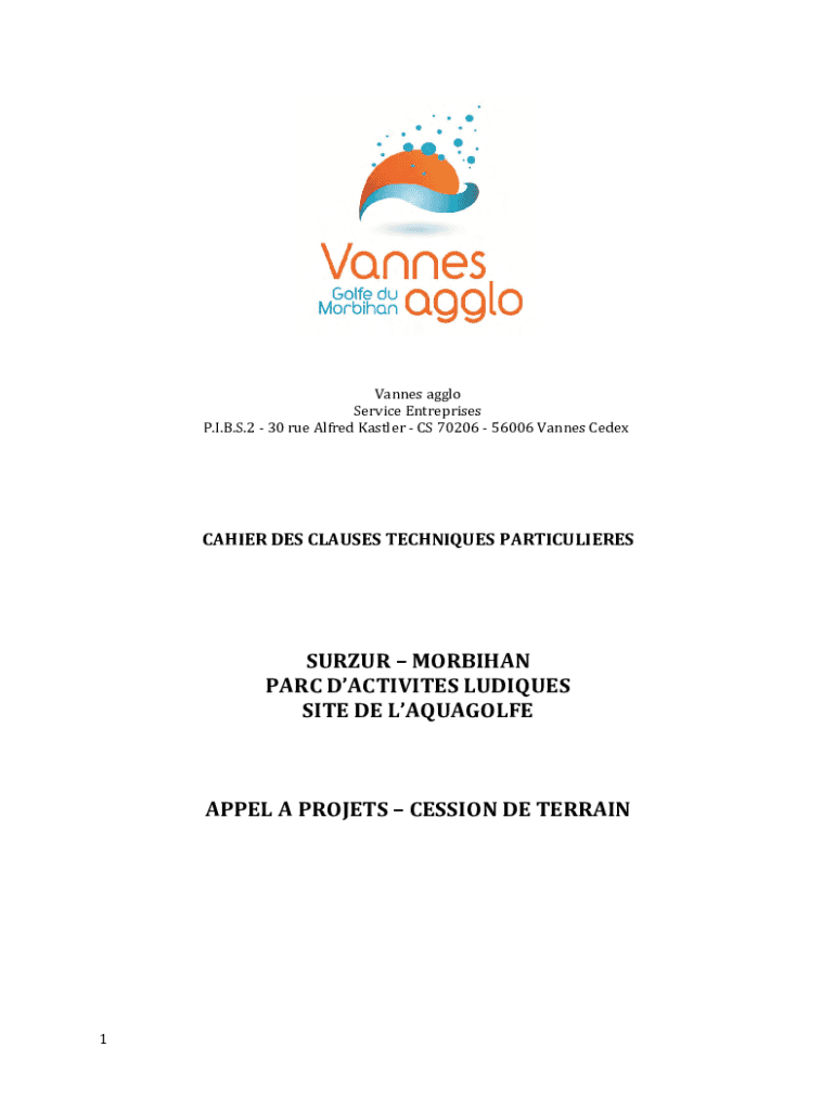 Cannes aggloService Enterprises. I.B.S.2 30 rue Alfred Castle CS 70206 56006 Cannes CedexCAHIER DES CLAUSES TECHNIQUES PARTICULIERESSURZUR MORBIHANPARC ACTIVITIES LUDIQUESSITE DE LAQUAGOLFEAPPEL A
