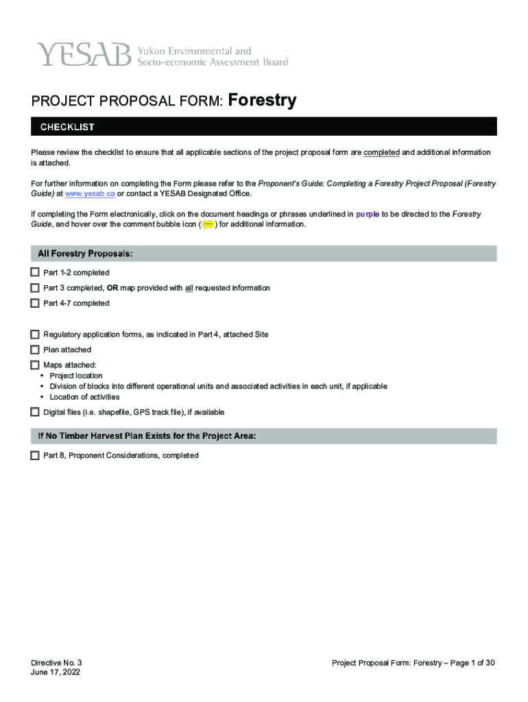 PROJECT PROPOSAL FORM:ForestryCHECKLIST Please review the checklist to ensure that all applicable sections of the project proposal form are completed and additional information is attached. For further
