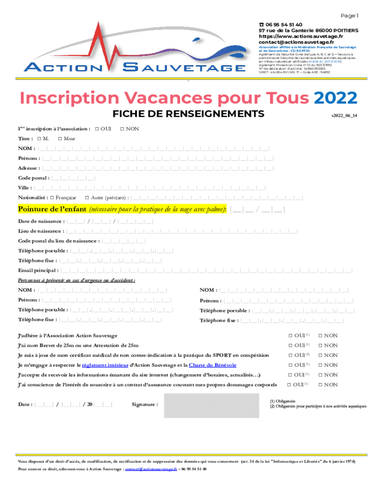 Vous recevrez une confirmation de votre adhésion au clubaction sauvetage par email.