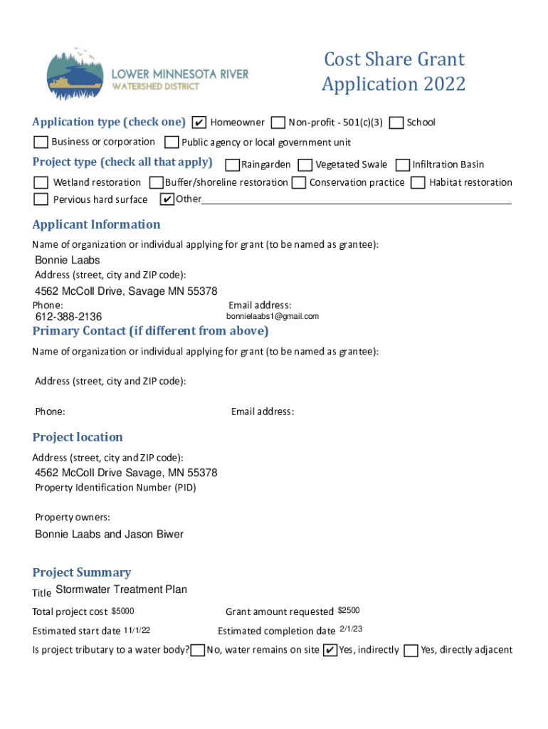 Executive Summary for Action Lower Minnesota River Watershed District Board of Managers Meeting Wednesday, October 19, 2022, Agenda Item 6. A. Cost Share Application for 4562 McCall Drive Prepared
