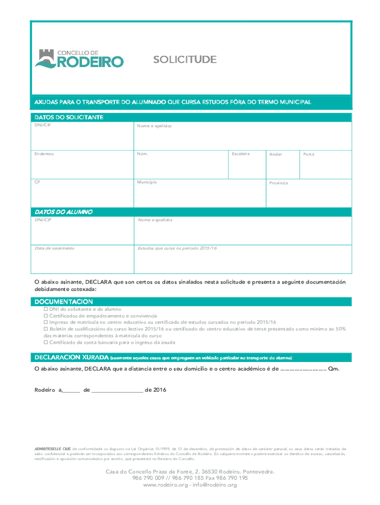 SOLICITUDEAXUDAS PARA O TRANSPORT DO ALUMNA DO QUE CURSE ESCUDOS FRA DO TERM MUNICIPAL