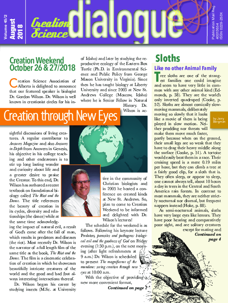 Publication Mail Reg. 40013654 ISSN 0229253XAugust 2018Volume 45/2Creation Science Creation Weekend October 26 & 27/2018Creation Science Association of Alberta is delighted to announce that our featured