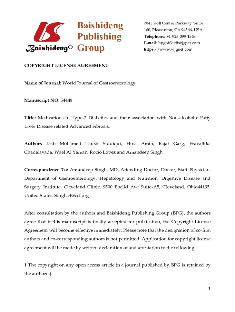 https://www.wjgnet.comCOPYRIGHT LICENSE AGREEMENTName of Journal: World Journal