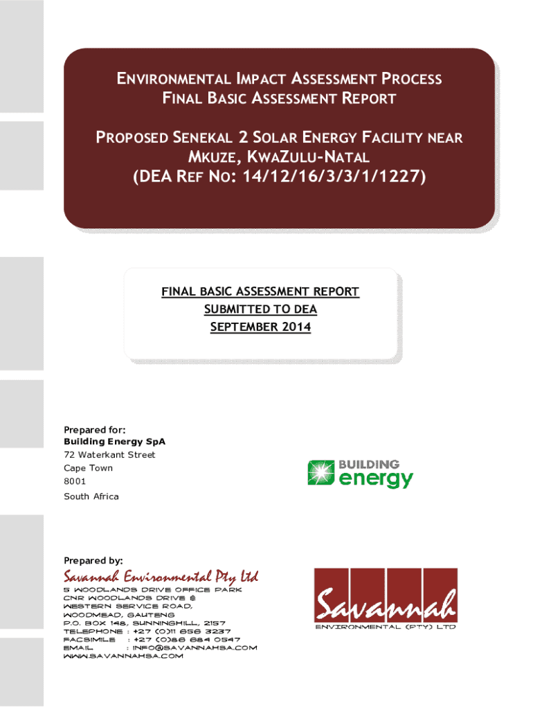 ENVIRONMENTAL IMPACT ASSESSMENT PROCESS FINAL BASIC ASSESSMENT REPORT PROPOSED SENEGAL 2 SOLAR ENERGY FACILITY NEAR MOUSE, KWAZULUNATAL (DEA REF NO: 14/12/16/3/3/1/1227)FINAL BASIC ASSESSMENT REPORT