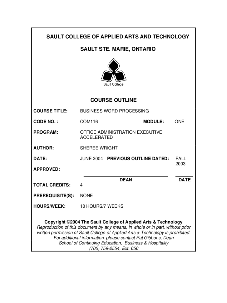 SALT STE. MARIE, ONTARIOSault CollegeCOURSE OUTLINE