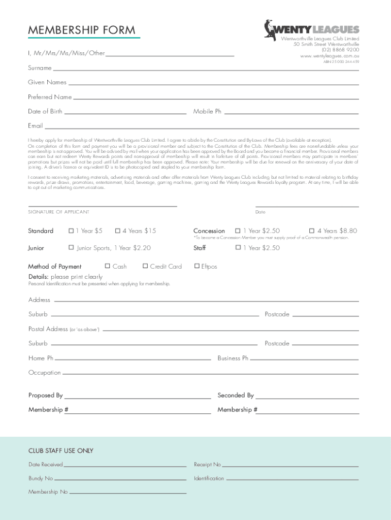 MEMBERSHIP FORMWentworthville Leagues Club Limited