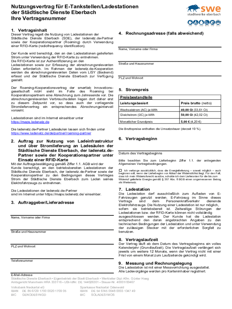 Nutzungsvertrag for ETankstellen/Ladestationen