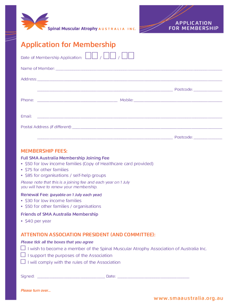 Get the free Application for Membership - Spinal Muscular Atrophy Australia