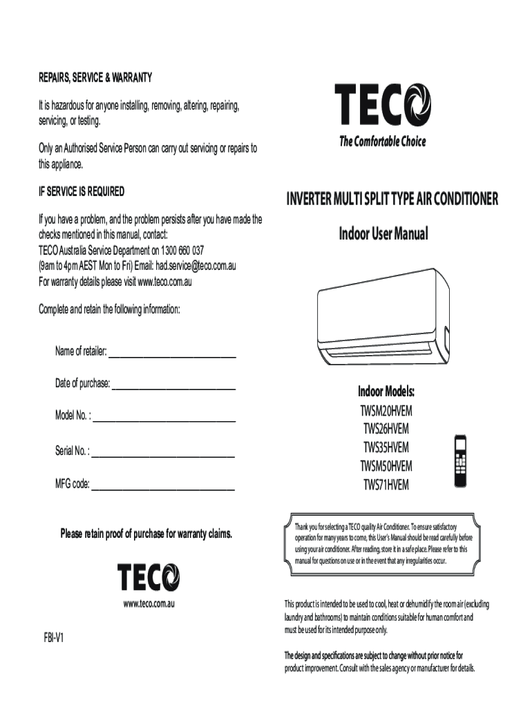 Get the free INVERTER MULTI SPLIT TYPE AIR CONDITIONER Indoor ...