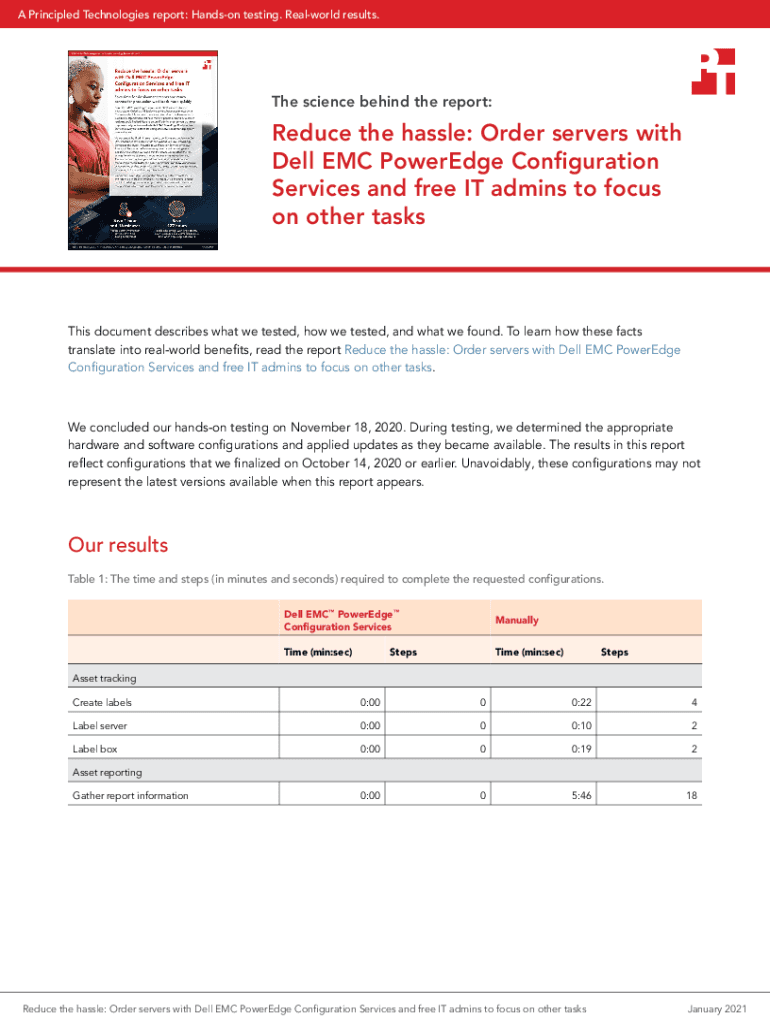 A Principled Technologies report: Hanson testing. Real world results. The science behind the report:Reduce the hassle: Order servers with Dell EMC Powered Configuration Services and free IT admins