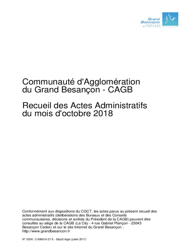 Obtenir le gratuit CAGB Recueil des Actes Administratifs du mois de fvrier ...