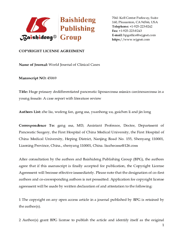 https://www.wjgnet.comCOPYRIGHT LICENSE AGREEMENTName of Journal: