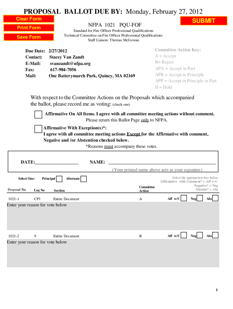 PROPOSAL BALLOT DUE BY: Monday, February 27, 2012,