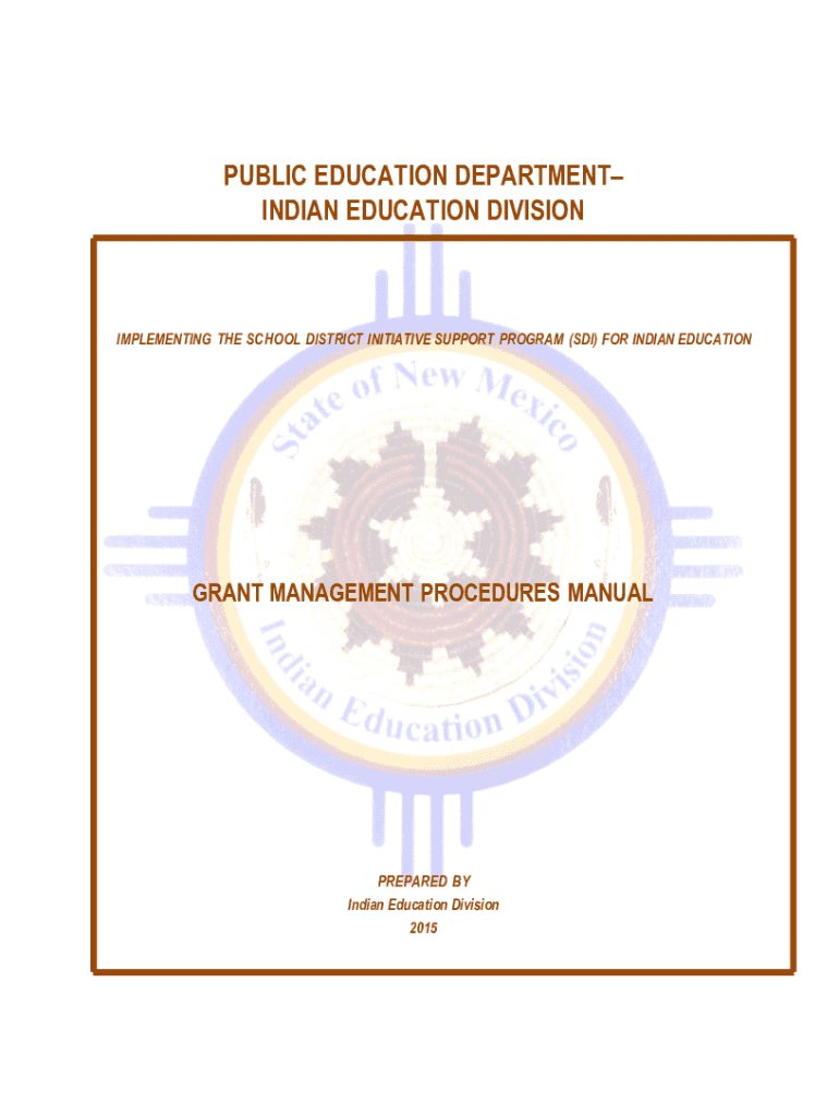 PUBLIC EDUCATION DEPARTMENT INDIAN EDUCATION DIVISIONIMPLEMENTING THE SCHOOL DISTRICT INITIATIVE SUPPORT PROGRAM (SDI) FOR INDIAN EDUCATIONGRANT MANAGEMENT PROCEDURES MANUALPREPARED BY Indian Education