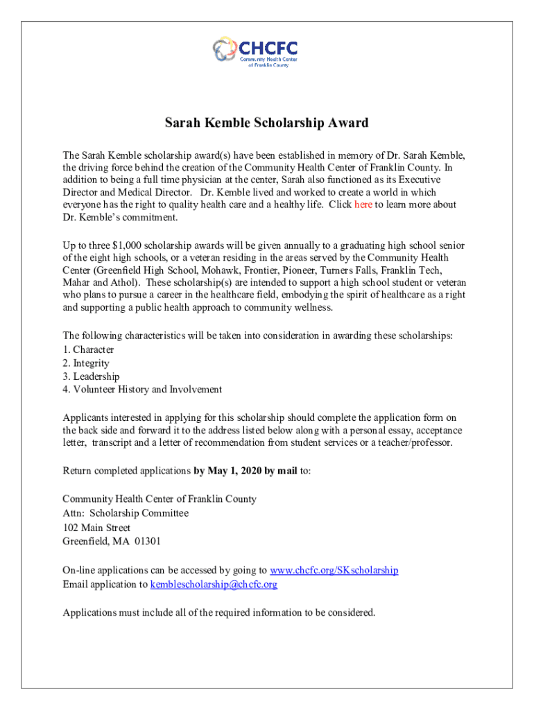 Get the free New scholarships will honor Dr. Sarah Kemble