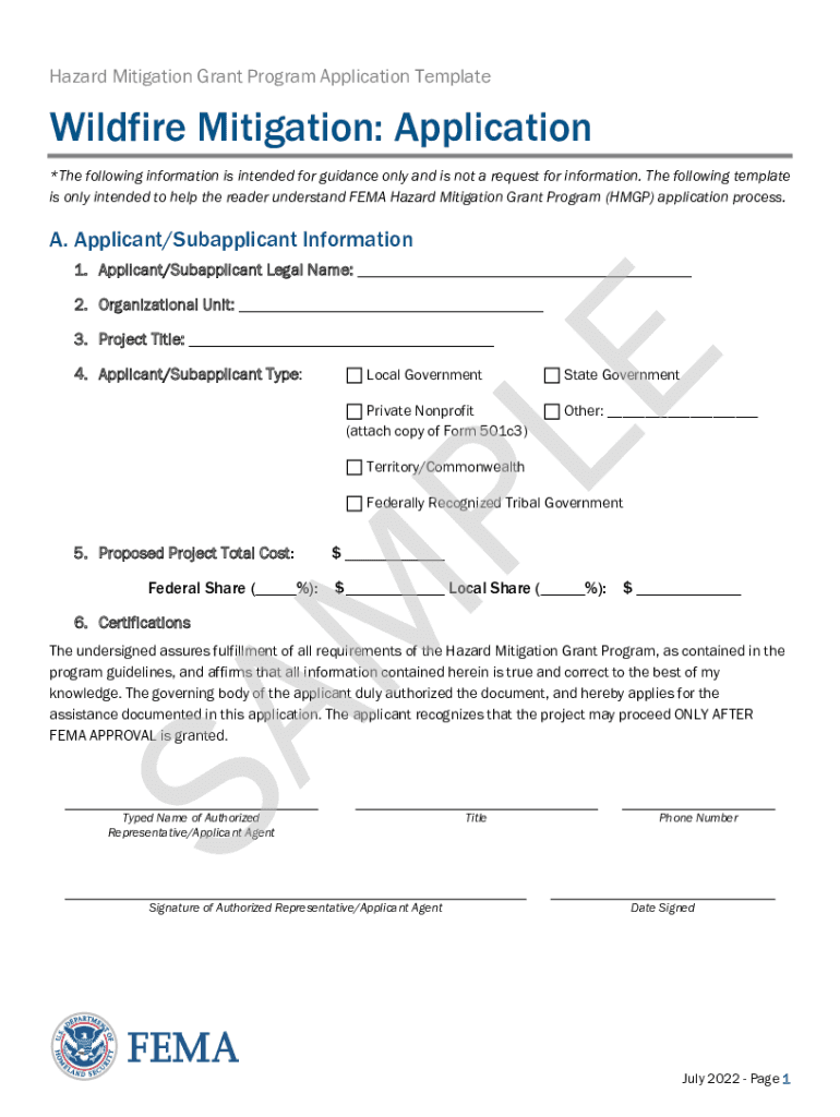 Hazard Mitigation Grant Program Application TemplateWildfire Mitigation: Application