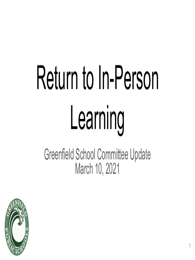 Return to Unperson Learning Greenfield School Committee Update March 10, 20211Commissioners Plan2**Parents/Caregivers will have the opportunity to choose to remain in remote learning mode for the
