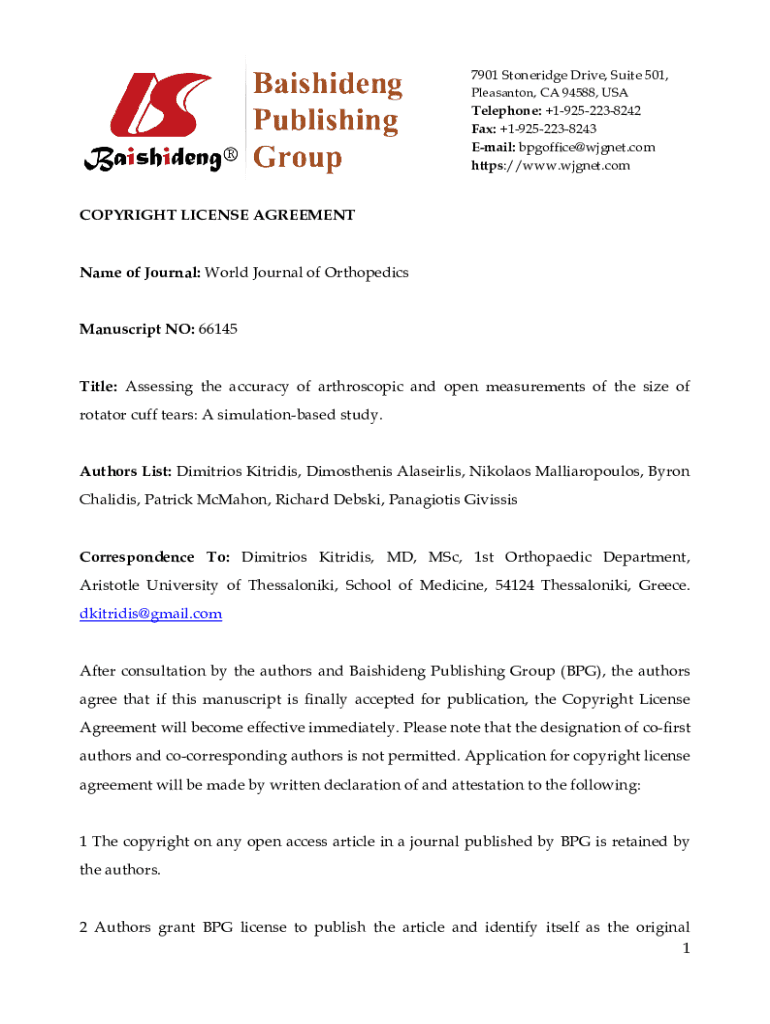 https://www.wjgnet.comCOPYRIGHT LICENSE AGREEMENTName of Journal: World