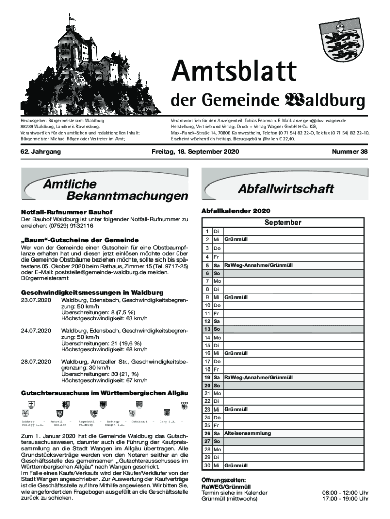 Welche Informationen müssen auf der bauhof waldburg ist gemeldet werden?
