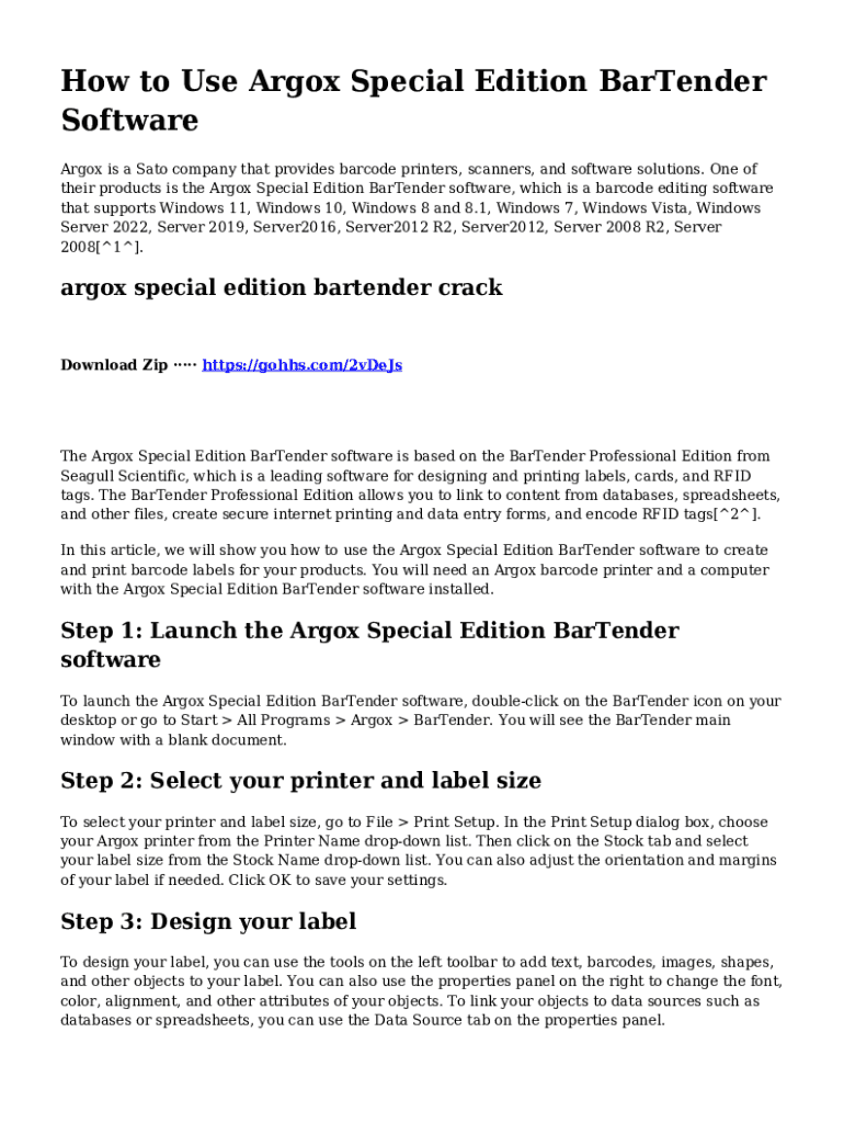 Get the free How to Use Argox Special Edition BarTender Software