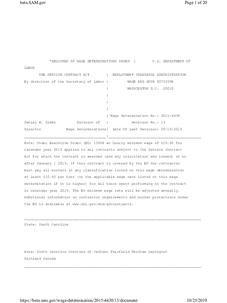 Beta.SAM.gov Page 1 of 20\” REGISTER OF WAGE DETERMINATIONS UNDER|U.S. DEPARTMENT LABOR THE SERVICE CONTRACT ACT|By direction of the Secretary of Labor | |EMPLOYMENT STANDARDS ADMINISTRATION WAGE