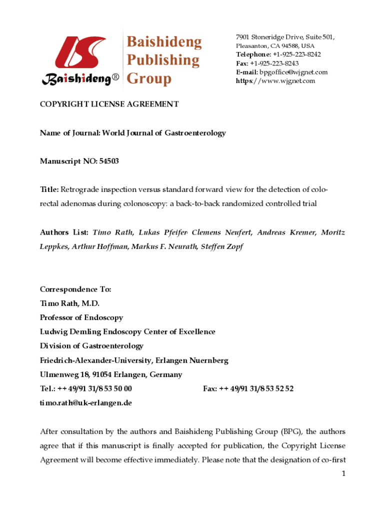 https://www.wjgnet.comCOPYRIGHT LICENSE AGREEMENTName of Journal: