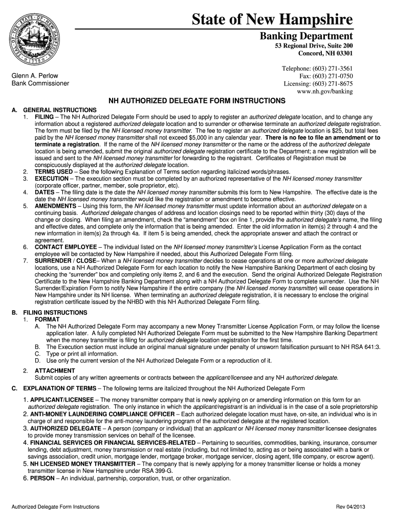 Get the free NH AUTHORIZED DELEGATE FORM INSTRUCTIONS - nh