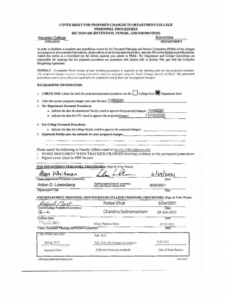 SECTION 600 (RETENTION, TENURE, AND PROMOTION)EconomicsNazarian CollegeDEPARTMENTCOLLEGEln order to facilitate a complete