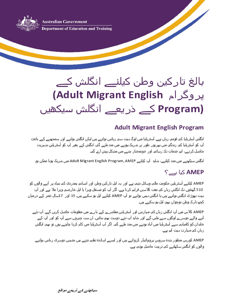 The Adult Migrant English Program (AMEP) is a program funded by the Australian government that provides free English language courses to eligible migrants and humanitarian entrants to help them settle successfully in Australia.