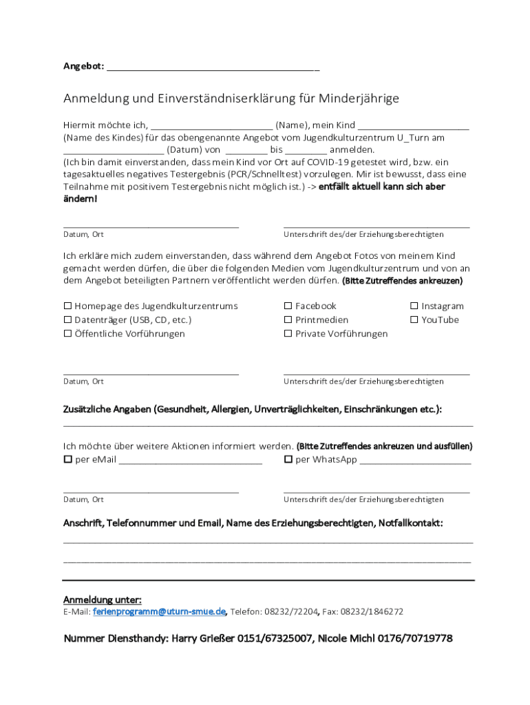 Holen Sie sich kostenlos Anmeldung und Einverstndniserklrung fr Minderjhrige