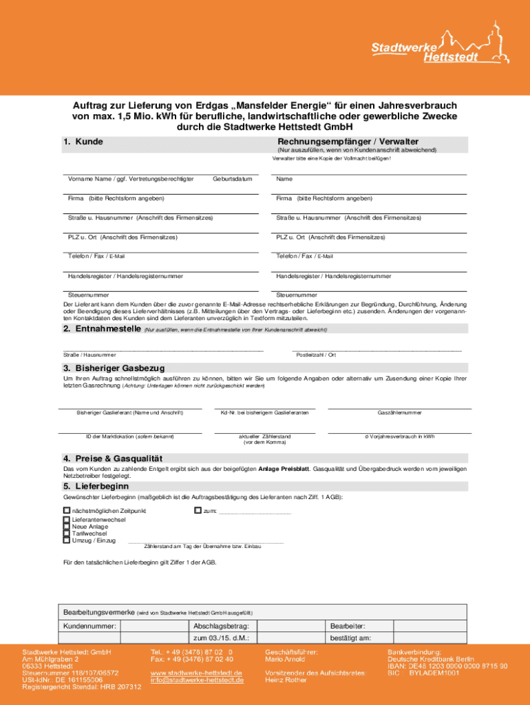 Es müssen persönliche Daten, Adresse, Verbrauchsdaten und gegebenenfalls Informationen zu vorherigen Anbietern gemeldet werden.