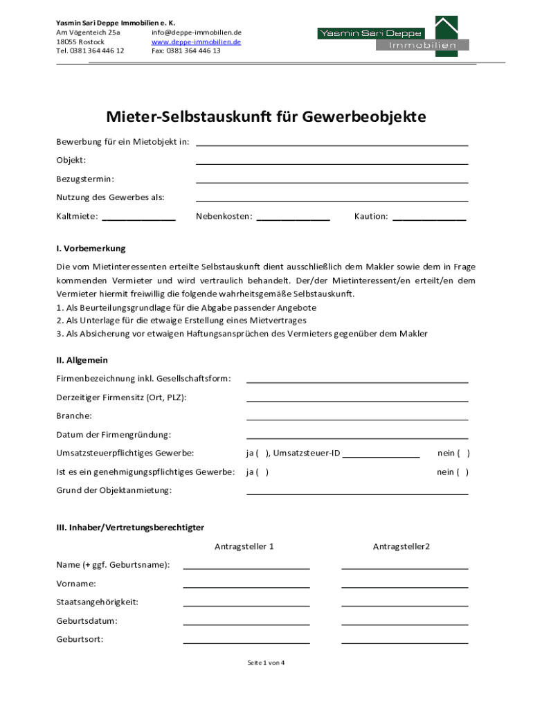 Fax: 0381 364 446 13MieterSelbstauskunft for Gewerbeobjekte