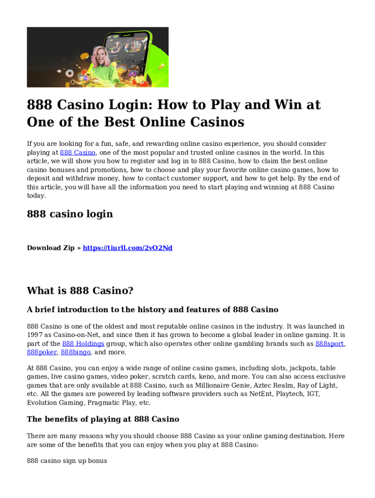 888 Casino Logins: How to Play and Win at One of the Best Online Casinos If you are looking for a fun, safe, and rewarding online casino experience, you should consider playing at 888 Casinos, one