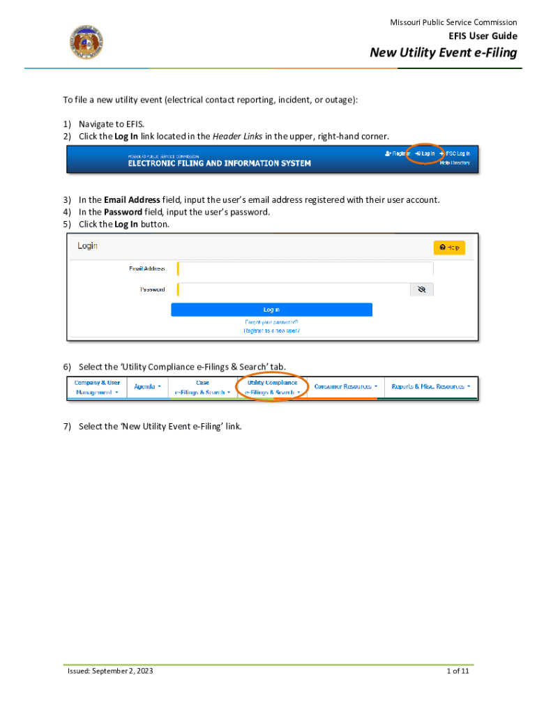 Get the free New Utility Event e-Filing - Missouri Public Service Commission - psc mo