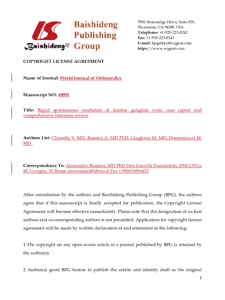 7901 Stone ridge Drive, Suite 501, Pleasant on, CA 94588, USA Telephone: +19252238242 Fax: +19252238243 Email: bpgoffice@wjgnet.com https://www.wjgnet.comCOPYRIGHT LICENSE AGREEMENTName of Journal: