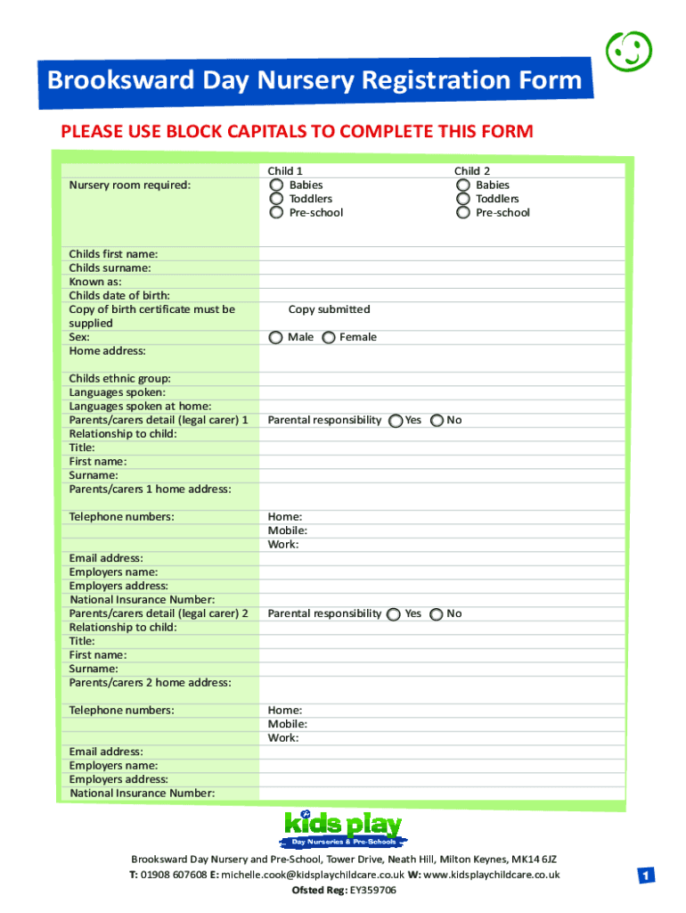 How to fill out brooksward day nursery reg