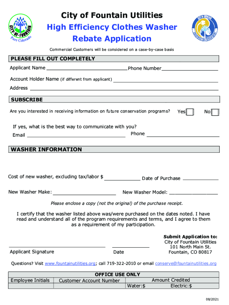 Get the free City of Fountain Utilities High Efficiency Clothes Washer Rebate ...