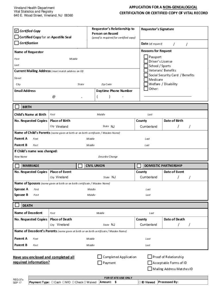 City of vineland vital forms can be obtained from the city's vital records office and must be filled out completely and accurately with details of the event.