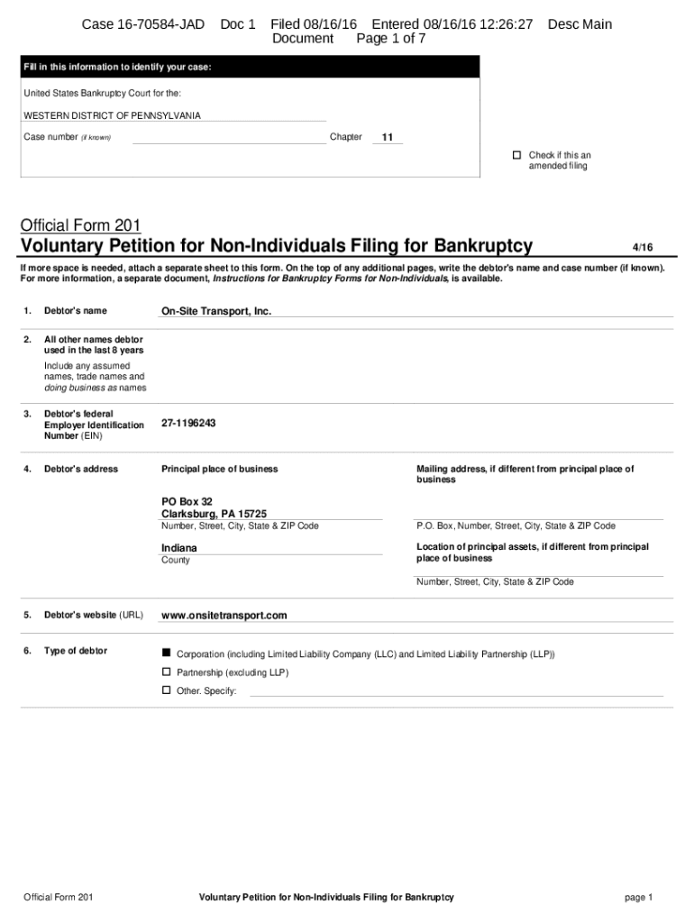 Get the free Bankruptcy Forms. On-Site Transport, Inc. - Christopher M. Frye 208402