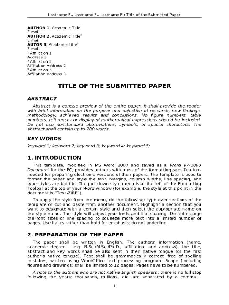 Fill in the required details such as title, author's name, abstract content, keywords, etc.