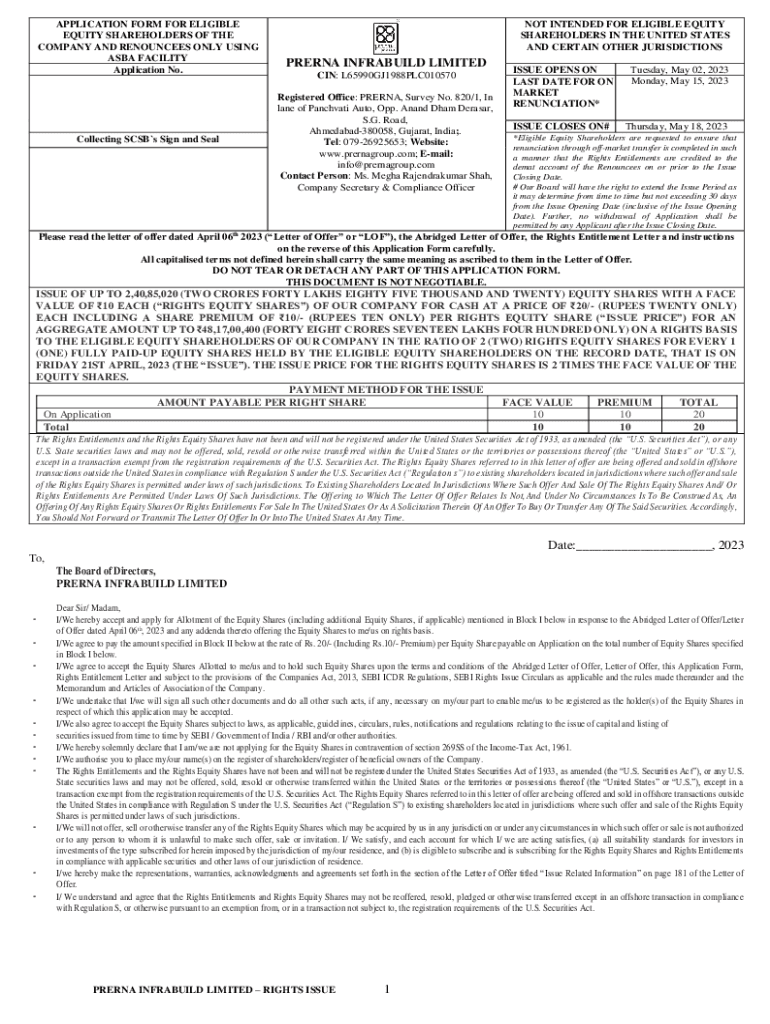 Get the free application form for eligible equity shareholders of ...