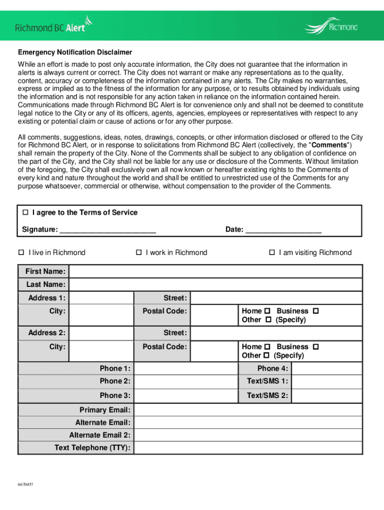 Get the free Emergency Notification System - City of Richmond, BC