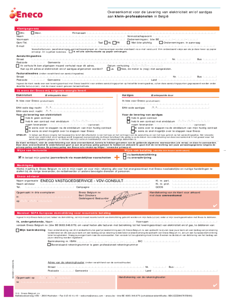 Pak de gratis Overeenkomst voor de Levering van elektriciteit en/of aardgas