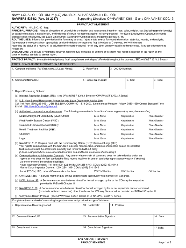 Get the free NAVY EQUAL OPPORTUNITY (EO) AND SEXUAL HARASSMENT REPORT