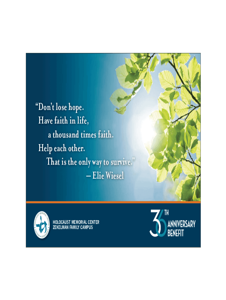 Don't lose hope. Have faith in life, a thousand times faith. Help each other. That is the only way to survive. Elie WieselHOLOCAUST MEMORIAL CENTER PERELMAN FAMILY CAMPUS Eleanor Jackie triumphed
